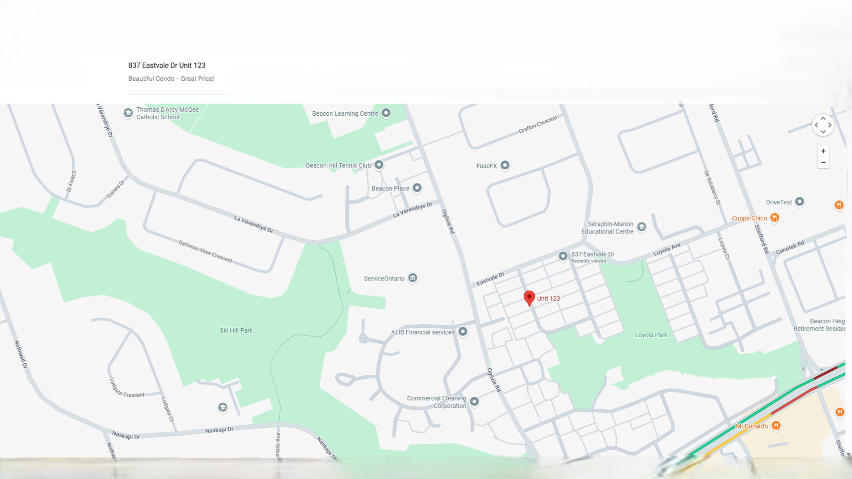 With its great schools, tree-lined streets and your daily needs within walking distance, Beacon Hill North is more that a neighbourhood, it's a community-it even hosts its own Canada Day fireworks. 837 Eastvale Unit 123 is a lovingly updated end-unit townhome that fills with morning light. Units come with a conveniently located parking spots with others often available for rent from other residents. (Or: This home has convenient parking spot, extra parking can be available for rent.) But you don't need a car, with Shoppers across the street and Metro in Ogilvie Square just a short walk or bus ride away. Need to get downtown? The soon-to-open Montreal LRT station is only a kilometre from your door. One of the coveted units in this checker-board style complex, its "open on two sides backyard" was re-done in 2023 and has a good-size shed for your all gardening supplies or storing bikes. With the Ottawa river pathway just down the street it's a great place for a ride. When you have to be indoors you get to enjoy the bright beautiful kitchen (2020) with its high-end appliances, or the large open dining room and living room. With new laminate flooring (2020) and a renovated half bath (2020) the basement is up to your imagination, it could be your home gym, office or family room. And there's no need to worry about storage, with a full-sized entry/coat closet, spacious pantry and deep linen closet there's space for you and your things. Upstairs you'll find a large primary and two other well-sized bedrooms along with a recently refreshed bathroom (2023). The hardwood flooring upstairs and new tile (2020) in the hallway and kitchen are classic and inviting, and easy to maintain. An elegant wood and iron banister and hardwood stairs tie the main and upper floors together. With its new but timeless upgrades and finishes unit 123 was loved and cared for and is ready for its new owner. ~WELCOME HOME~